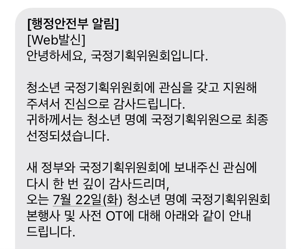 이재명정부는 '국민주권정부'라는 이명(異名)을 가지고 출범했습니다. 이번 청소년 명예위원 위촉 역시 청소년 국민의 목소리를 듣는다는 목적으로 진행하는 사업입니다. 그동안 사회적 담론에서 소외되는 일이 많았던 청소년의 의견을 직접 전할 수 있는 귀중한 기회인 만큼, 최선을 다해 목소리를 내고 오겠습니다.